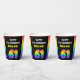 This joyful and upbeat birthday themed paper cup design features the number “61“ with a colourful rainbow spectrum inspired gradient pattern, along with the message “HAPPY 61st BIRTHDAY,”, and a personalized recipient name. Paper cups like this might be used when celebrating somebody’s sixty first birthday. [~Z0000639]