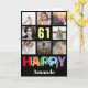 61st Happy Birthday Photo Collage Modern Black Card with personalized name. For further customization, please click the "Customize it" button and use our design tool to modify this template.