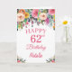 62e anniversaire Watercolor Floral Flowers Pink Card avec nom et âge personnalisés.