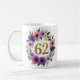 Célébrez 62 belles années avec cette élégante tasse d'anniversaire fleurie ! Doté d'une étonnante couronne d'aquarelle de fleurs roses et violettes, de feuilles verts luxuriants et d'un "62" doré au centre, ce mug est un cadeau parfait pour toute grand-mère, mère, tante ou ami qui a 62 ans. Délicate mais vibrante, elle est idéale pour le café du matin, le thé de l'après-midi, ou tout simplement pour profiter d'un moment de réflexion. Un souvenir intemporel pour une femme intemporelle.