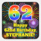 62nd Birthday: Fun Fireworks Look, Rainbow # 62 Square Sticker
