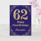 62nd Birthday Navy Blue and Gold Glitter Frame. For further customization, please click the "Customize it" button and use our design tool to modify this template.