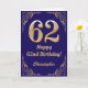 62nd Birthday Navy Blue and Gold Glitter Frame Card