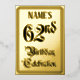 The front of this opulent sixty-second birthday party foil announcement/invitation card design features the message “62nd Birthday Celebration” in elegant script-style text. It also features an editable name. The back features personalized details about the event, such as the date, time, place, and any other information that may be important. Ornate, fancy, customized invitations like these might be used to invite guests to a birthday party being held to honour somebody’s sixty-second birthday. [~Z0000596]