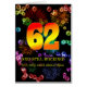 Celebrate a 62nd birthday with a funny card. Still rocking, but only until 9pm has a ring of truth that will give a laugh. A great birthday card for the ageing rocker in your life.