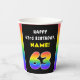 63rd Birthday: Colourful Rainbow # 63, Custom Name Paper Cups