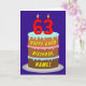 63rd Birthday: Fun Cake and Candles + Custom Name Card
