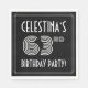 This elegant sixty-third birthday party paper napkin design features an editable name, a fancy art deco style inspired number “63rd”, the message “BIRTHDAY PARTY!”, and a border pattern consisting of lines. The background is coloured black by default, but it can be customized to a different colour, if desired. Paper napkins like these might be used when celebrating somebody’s sixty third birthday. [~Z0000616]