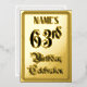 The front of this fancy and luxurious sixty-third birthday celebration/party foil announcement card design features the message “63rd Birthday Celebration” in elaborate script-style text. It also has a customizable name. The back features personalized details about the event, such as the date, time, venue/place, and any other useful information. Ornate, elaborate, customized invitations like these might be used to invite guests to a birthday celebration being held in celebration of somebody’s sixty-third birthday. [~Z0000596]