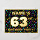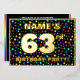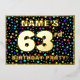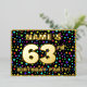 The front of this fun and joyful sixty-third birthday celebration foil invitation card design features a personalized name, a large number “63rd”, the message “BIRTHDAY PARTY!”, and a border. The background of the front features an eye-catching, multicolored star shapes pattern. The back features personalized details about the event, such as the date, time, place/venue, and any other important information. Editable invitations like these might be a fun way to invite attendees to a birthday gathering/party being held to celebrate somebody’s 63rd birthday. [~Z0000600]