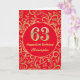 63rd Birthday Red and Gold Floral Pattern Card