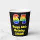 This colourful and fun birthday paper cup design features a large number “64” having a rainbow spectrum gradient inspired pattern. It also features the message “Happy 64th Birthday,”, and a custom name. The background is coloured black. Colourful, vibrant paper cups like this might be fun to use at a birthday party/celebration being held to honour somebody’s sixty fourth birthday. [~Z0000537]