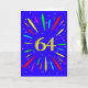 An explosive 64th birthday card! What a wonderful way to send birthday greetings. The number 64 in bright yellow with an explosion of bright colours and stars.