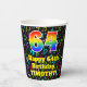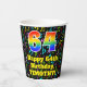 This fun and joyful music themed birthday paper cup design features a large number “64” having a rainbow spectrum gradient inspired pattern. It also features the message “Happy 64th Birthday,”, and a customizable name. The background features an exciting and colourful pattern of various music notes and symbols having a variety of sizes and colours. Vibrant, colourful paper cups like this might be fun to have at a birthday party being held to honour somebody’s 64th birthday. [~Z0000541]