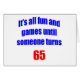 C'est tous les amusement et jeux jusqu'à ce que quelqu'un tourne 65. Soixante-cinquième conception humoristique d'anniversaire pour 65 ans qui a un sens de l'humour au sujet de leur âge. Fait un grand soixante-cinquième cadeau d'anniversaire.