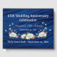Delightful addition to your 65th wedding anniversary party, guest book is a special personal keepsake for the event. White roses, pink flowers and blue bells on sapphire blue drape with custom names and dates on front, back and spine Personalize in template provided. Check out party supplies with matching design in the Party Pack section of my studio store on Zazzle.