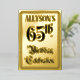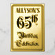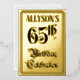The front of this luxurious sixty-fifth birthday celebration/party foil invitation card design features the message “65th Birthday Celebration” in elegant script-style text. It also features a custom name. The back features personalized details about the event, such as the date, time, location/venue, and any other important information. Fancy, ornate, customized invitations like these might be used to invite guests to a birthday party/celebration being held to celebrate somebody’s 65th birthday. [~Z0000596]