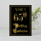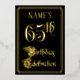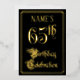 The front of this ornate and elegant foil sixty-fifth birthday celebration/party invitation design features the message “65th Birthday Celebration” in opulent script-style text. It also has an editable name. The background of the front is coloured black by default (although it can be customized to a different colour). The back features personalized details about the event, such as the date, time, location, and any other information that may be relevant. Opulent, fancy, editable invitations like these might be used to invite guests to a birthday party being held in celebration of somebody’s sixty-fifth birthday. [~Z0000589]