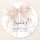 65th Birthday Party Pink Bow with Roses Paper Coaster