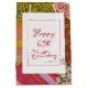 Old-fashioned quilt pattern with needle and red thread for 65th birthday.