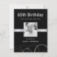 Casual yet classy Silver and Black 65th Surprise Adult Birthday Party Invitations with photo -- Add your photo and customize the name, date, and details to create your own unique personalized party Photo invitations. Can easily be customized for birthday party, wedding, save-the-date announcements, retirement party, special awards, graduation bachelor and bachelorette party, corporate events, fundraiser, and other happy celebrations. **NOTE: Sized for 4.25 x 5.5 invitation cards -- other sizes and styles available in gallery..