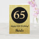65th Happy Birthday Black and Gold Glitter Card with personalized name. For further customization, please click the "Customize it" button and use our design tool to modify this template.