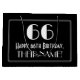This vintage look 1920s/1930s appearance inspired birthday giftbag design features a large art deco style inspired number "66", the message "Happy 66th Birthday,", a custom name, and a border pattern consisting of thin lines. It also features a black-coloured background. A gift bag like this might be used when wrapping gifts being given to somebody in celebration of their sixty sixth birthday. [~Z0000496]