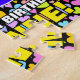 This colourful and vibrant birthday themed jigsaw puzzle design features a large number “66” with a multicolored rainbow spectrum inspired gradient pattern, along with the message “HAPPY 66th BIRTHDAY,”, and an editable recipient name. The background features a cheerful pattern of heart shapes with various sizes and colours. A fun, customizable birthday puzzle like this might be a fun way to deliver a birthday greeting message to somebody who is celebrating their sixty-sixth birthday. [~Z0000611]