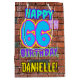 The front of this fun birthday-themed gift bag design features the message “HAPPY 66TH BIRTHDAY,” having a colourful, vibrant, urban street art and graffiti inspired look, in addition to a customizable recipient name. The background features a brick wall inspired pattern. A colourful giftbag like this might be used when wrapping presents being given to somebody in celebration of their sixty sixth birthday. [~Z0000536]