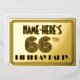 The front of this stylish and 1920s/1930s style inspired sixty-sixth birthday celebration/party foil invitation card design features a custom name, a fancy art deco look inspired number “66th”, the message “BIRTHDAY PARTY”, and a border pattern consisting of lines. The back features personalized details about the event, such as the date, time, venue/location, and any other information that may be useful. Luxurious, elegant, customized invitations like these might be used to invite guests to a birthday gathering/party being held to honour somebody’s 66th birthday. [~Z0000594]