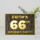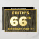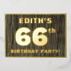 The front of this bold sixty-sixth birthday celebration foil invitation card features a custom name, a large number “66th”, the message “BIRTHDAY PARTY!”, and a border, all in foil. The background of the front features a rustic, yet elegant, faux wood grain look inspired pattern. The back features personalized details about the event, such as the date, time, venue, and any other relevant information. Editable invitations like these might be used to invite attendees/guests to a birthday gathering being held to honour somebody’s 66th birthday. [~Z0000598]