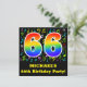 Le devant de cette conception amusante, excitante et vibrante d'invitation de fête d'anniversaire comprend un grand nombre de "66" avec un motif inspiré par un gradient de spectre arc-en-ciel, avec un nom personnalisé et le message "66e fête d'anniversaire!" Une partie de l'arrière - plan dispose d'un motif amusant de divers notes de musique et symboles ayant une variété de couleurs et de tailles. Le verso présente des détails/informations personnalisés concernant l'événement auquel les invités potentiels sont invités. Des cartes d’invitation de fête d’anniversaire customisées et dynamiques comme celle-ci pourraient être envoyées aux invités potentiels d’un rassemblement organisé pour célébrer le soixante-sixième anniversaire d’un musicien, d’un compositeur de chansons, d’un chanteur ou d’une autre personne. [~Z0000427]