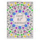 67th Birthday card. A glorious abstract pattern with flowers and diamonds. A very pretty, feminine, and stylish way to say 'Happy Birthday'. An unusual design that stands out. Send your birthday wishes in an elegant and eloquent way. All the diamonds on this card are printed.