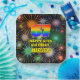 This joyful and fun birthday-themed paper plate design features a large number “67” having a colourful rainbow spectrum inspired gradient pattern. It also features the message “HAPPY 67th BIRTHDAY,”, and a personalized name. The background of the front features a cheerful, multicolored pattern inspired by bursting celebratory fireworks. Upbeat paper plates like this might be used when hosting a birthday party for somebody in celebration of their sixty seventh birthday. [~Z0000604]