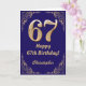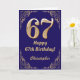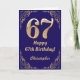 67th Birthday Navy Blue and Gold Glitter Frame Card