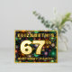 The front of this vibrant sixty-seventh birthday party/celebration foil invitation postcard design features a custom name, a large number “67th”, the message “BIRTHDAY PARTY!”, and a border. The background of the front has an upbeat, colourful bursting celebratory fireworks-inspired pattern. The back features personalized details about the event, such as the date, time, venue/location, and any other relevant information. Editable invitations like these might be a fun way to let guests know about a birthday gathering being held in celebration of somebody’s 67th birthday. [~Z0000609]