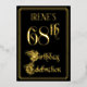 The front of this elegant and opulent foil sixty-eighth birthday party/celebration invitation design features the message “68th Birthday Celebration” in ornate script-style text. It also has a custom name. The background of the front is coloured black by default (although it can be customized to a different colour). The back features personalized details about the event, such as the date, time, location, and any other information that may be relevant. Fancy, ornate, personalized invitations like these might be used to invite guests to a birthday party being held to celebrate somebody’s sixty-eighth birthday. [~Z0000589]