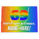 This exciting and cheerful birthday-themed giftbag design features a large number “69” having a colourful rainbow spectrum inspired gradient pattern. It also features the message “HAPPY 69th BIRTHDAY,”, and a personalized recipient name. The background also features a fun multicolored rainbow spectrum inspired gradient pattern. Personalized birthday themed gift bags like this might be a fun way to wrap gifts or presents being given to somebody who is celebrating their 69th birthday. [~Z0000577]