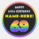 69th Birthday: Colourful Rainbow # 69, Custom Name Classic Round Sticker