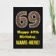 69th Birthday: Name, Faux Wood Grain Pattern "69" Card