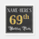 This elegant and ornate birthday-themed paper napkin design features a customizable name and the message “69th Birthday Party”. The large number “69th” has an imitation/faux gold-inspired colouring pattern, and the words “Birthday Party” are in opulent script-style text. The background is coloured black by default (although it can be customized). Opulent, luxurious paper napkins like this might be useful at a birthday party being held to honour somebody’s sixty ninth birthday. [~Z0000565]