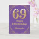 69th Birthday Purple and Gold Glitter Frame. For further customization, please click the "Customize it" button and use our design tool to modify this template.