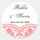 6 - 3" Favour Stickers Coral Pink White Damask Lac