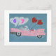 6 7 is in the clouds as this Poodle doggie is flying in the sky in a pink convertible classic car with heart balloons and roses in the back seat. A whimsical and fun card!