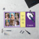 Tapis de bureau pour un ordinateur portable / ordinateur. Idée cadeau pour n'importe qui. Remplacez les 6 photos par vos photos préférées. Ajoutez les initiales et le nom. Violet, jaune et blanc avec de courtes phrases positives.