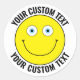 6 Custom Personalized Happy Face YELLOW, Blue Eyes Classic Round Sticker