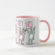 Amusant tasse pour quelqu'un avec un nom de 6 lettres. Amusante tasse rose et blanche avec illustration de lapins en rose et bleu. Les lapins tiennent des cartes pour épeler le nom. Le nom de l'exemple est Darcee. De mignons lapins bébés.