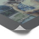 6 photos in an uneven pattern surround an opening for three lines of text. Use 2 square cropped photos and 4 vertical photos to make this work!