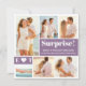 Tout le monde adorera voir vos photos fiançailles. Ce faire-part de collage de 6 photos vous donne une excellente occasion de les montrer. Les deux carrés bleus poussiéreux contiennent votre texte. Tout le texte blanc peut être modifié pour créer votre spin unique. J'ai ajouté une Surprise ludique ! Puis deux lignes de texte dans le grand carré dans le plus petit, j'ai inséré vos monogrammes séparés par un coeur.