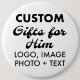 Custom Gifts for Him personalized 6" Giant Round Button Pin Badge. Upload logo, photo, image, design and add your own text to make your own personalised birthday, Christmas, Father's Day, Valentine's Day celebration, office gifts for him (man, men, husband, boyfriend, father, dad, young man, son).